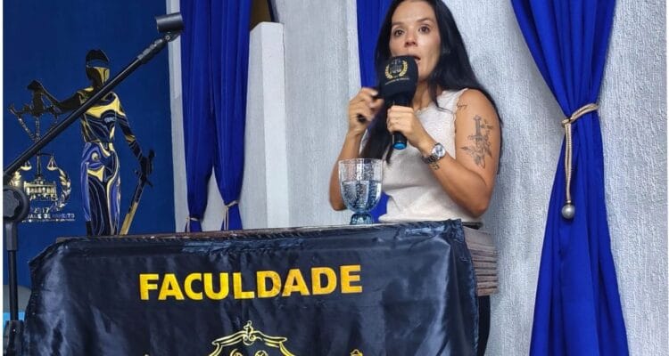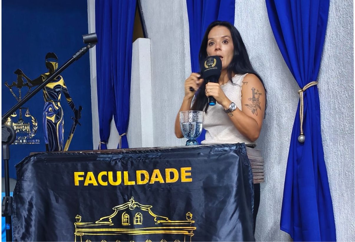 Dra. Carla Martins Kanedo compartilha sua experiência na Polícia Civil com os alunos de Direito da FAESB. Foro: Divulgação FAESB