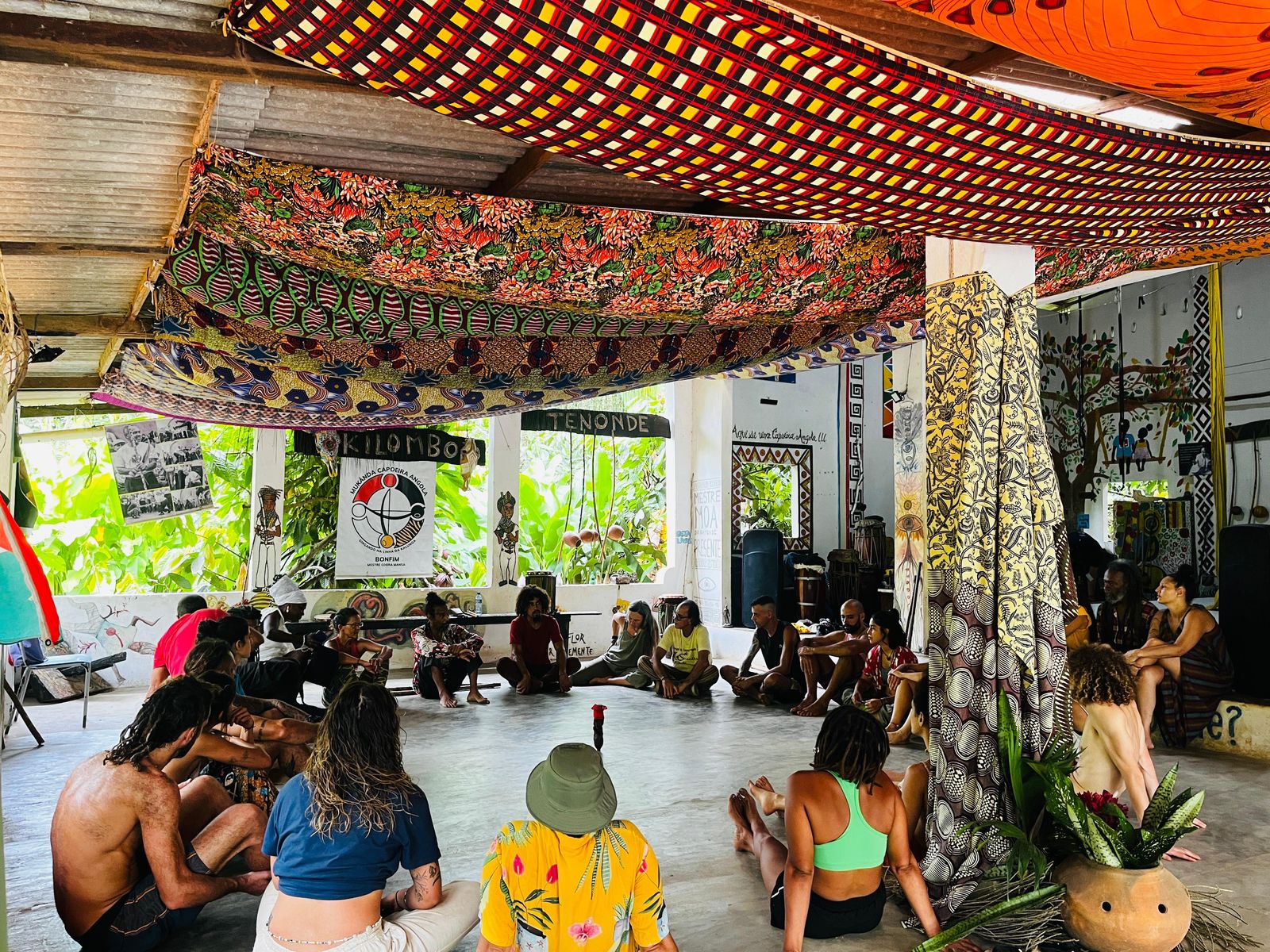 Durante seis dias de programação, o evento reúne participantes do Brasil e de países como França, Austrália e China, promovendo vivências e oficinas de Capoeira Angola, agrofloresta, plantas medicinais, artesanato, bioconstrução e mesas de troca de experiências, integrando cultura, espiritualidade e sustentabilidade.