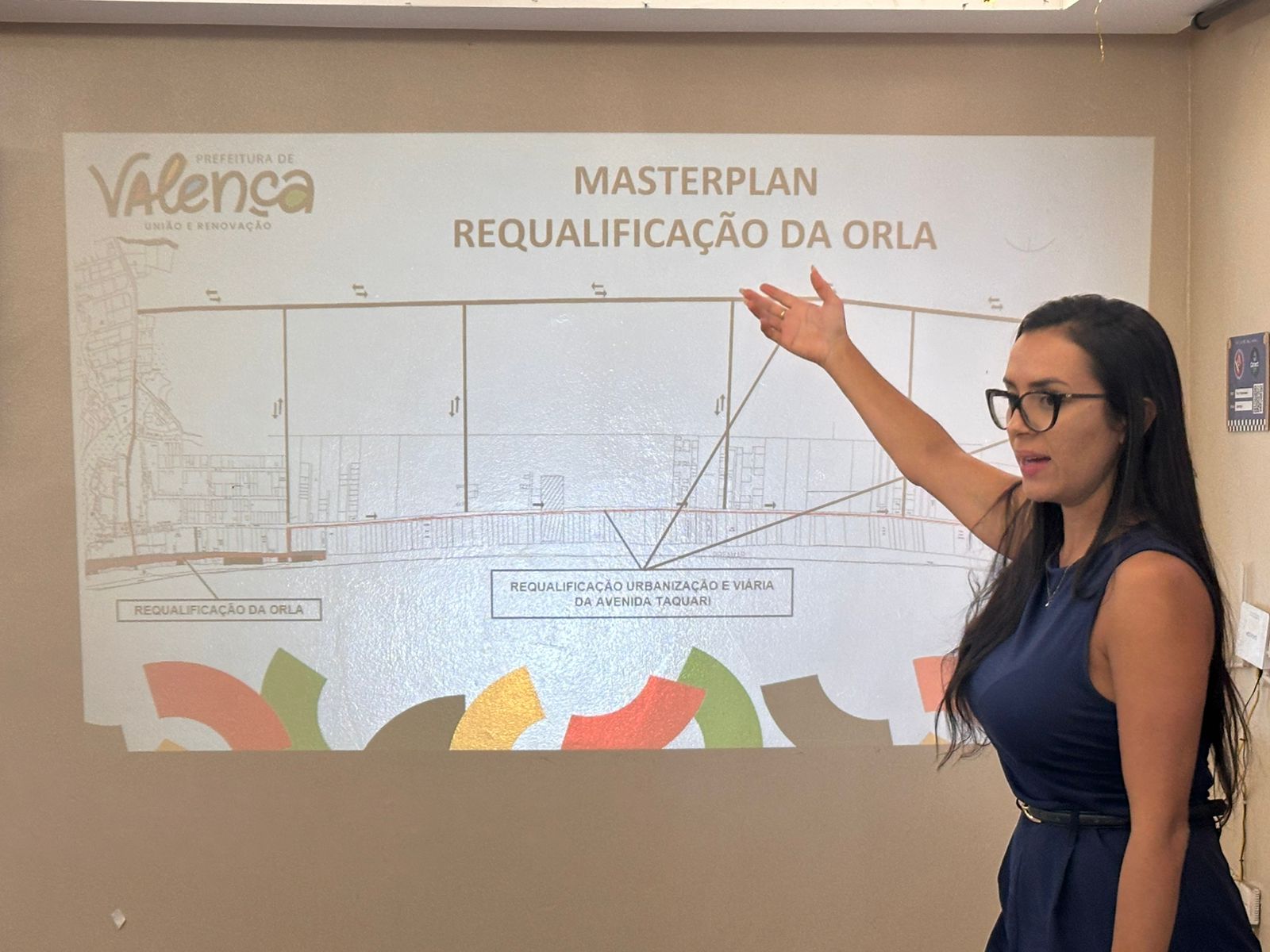 Durante a reunião, a arquiteta da Seinfra Valença, Alana Couto, apresentou aos conselheiros o projeto de requalificação da orla do Guaibim, inserido em um masterplan urbanístico que prevê melhorias na mobilidade, criação de espaços de convivência e reordenamento da área. O investimento estimado para execução das obras é de aproximadamente R$ 13,5 milhões.